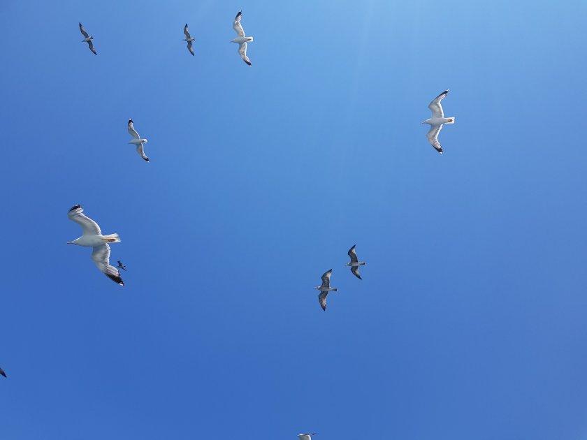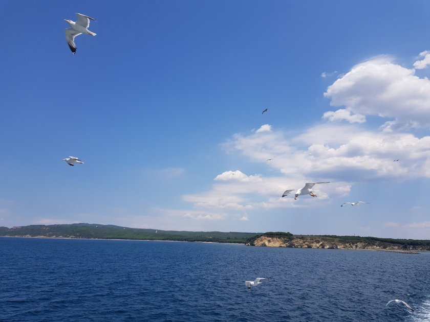 Yolculuk yaklaşık 1.5 saat sürüyor. Klimalı salonlarda önce yer kavgası var. Ama yolculuk başlayınca millet kendini dışarı atıyor. Gemilerin standart yoldaşı martılar herkesin sevgilisi. Marti beslemek de bu sevgiyi gosterme yolu. Gelsin selfiler , gitsin grup fotoları.
