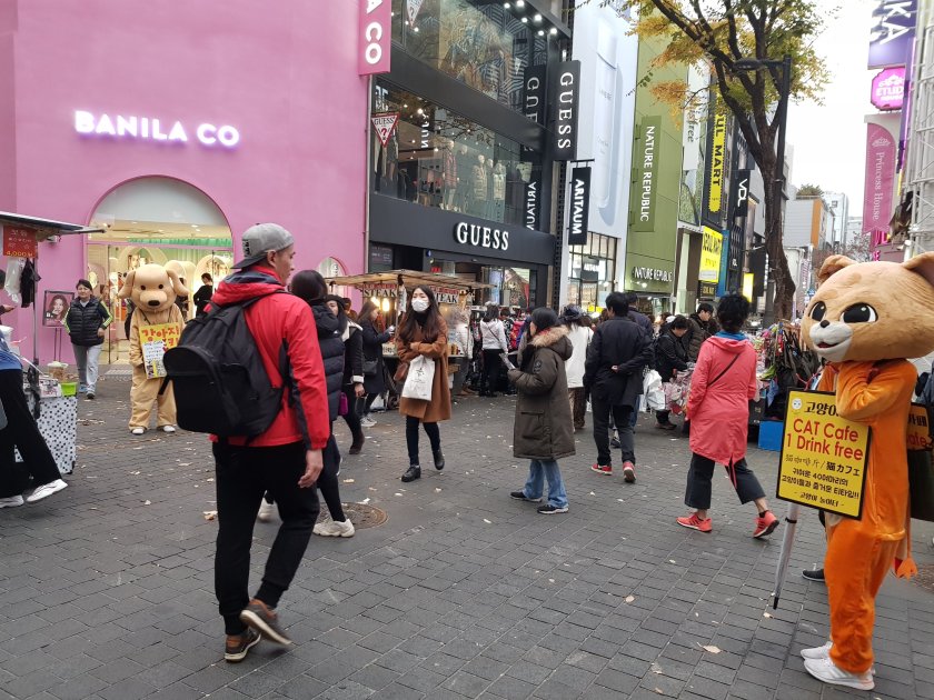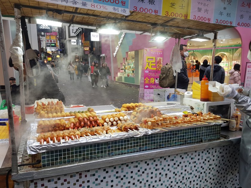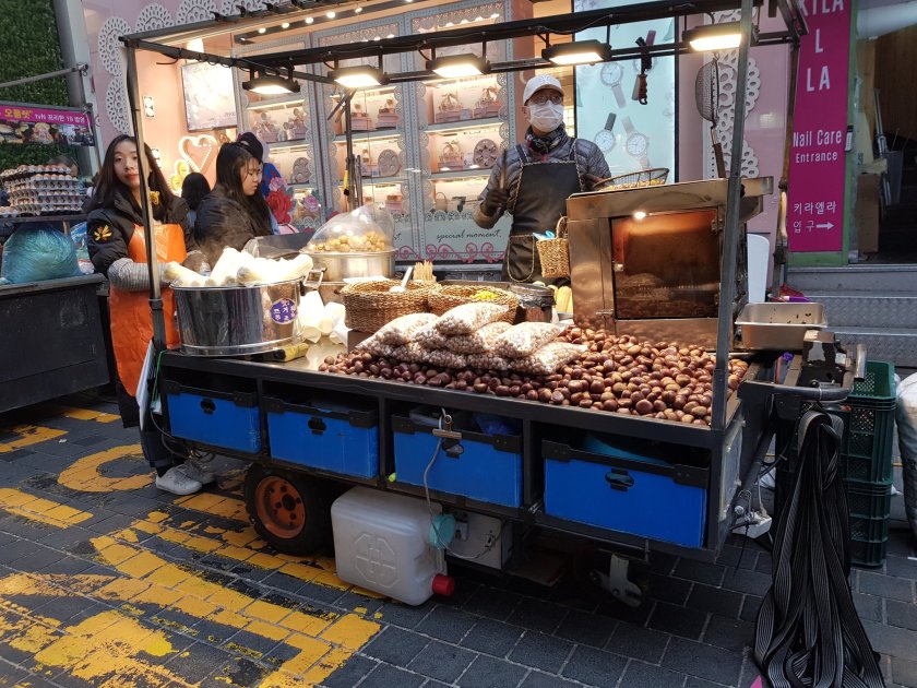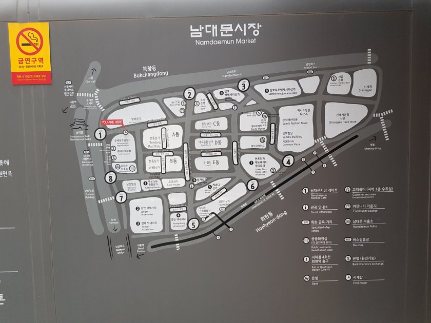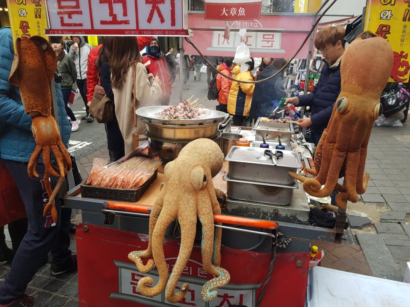 Namdaemun,biraz Mahmutpasa, biraz Tahtakale havasinda, sadece kozmetik ve kiyafet satan dukkanlar ile sokak yemekleri satilan bir acik pazar. Ilginc olan sokak yemekcilerinin hepsi farkli bir sey satıyordu. Bizdeki gibi 10 tane kokorecci yanyana degil.
