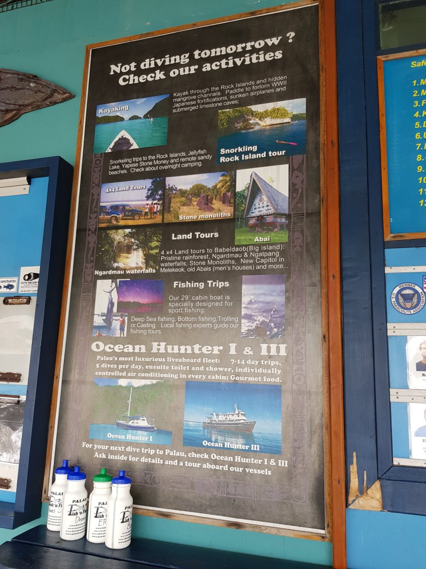 Son gun yine bos. Gece yarisi ucaga gidecegiz. Ama butun gun yagmur yagdi. Esyalar odada klimada kurumak zorunda. Cogunlukta kilo derdi. Palau suyunu tasimak cok hos degil. Exit Turizm farki ile 2 adet 23 kilo hakkimiz var. Ama ben tek bavul geldim. Ikinci bavul olsa hic problem degil. Neyse bakacagiz artik. Burada aldigim Palau kitabini belki business ucan arkadaslara verecegim.