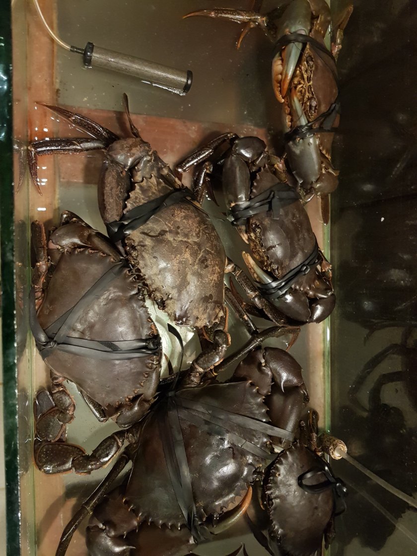 Herhalde yengeci meshur. Mangrov yengecinin menude 100 grami 9 usd. Iki arkadas ortak yemek istedi. Iri bir tane tarttirildi; 155 dolar. Hayvan 1 kilodan fazla.