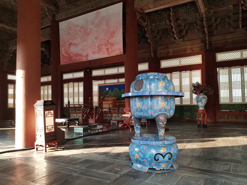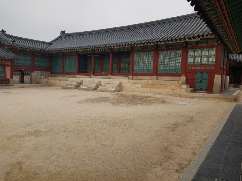1895 de tekrar yapilmis son kralin babasi tarafindan. Son kralice japon gangsterler tarafindan bu sarayda oldurulmus. 1905 de . 1910.1945 arasi japon hakimiyeti altinda imis. Korelileri baskilamis. Japon egitim japonca . Kore kulturunu oldurneye valiamislar.