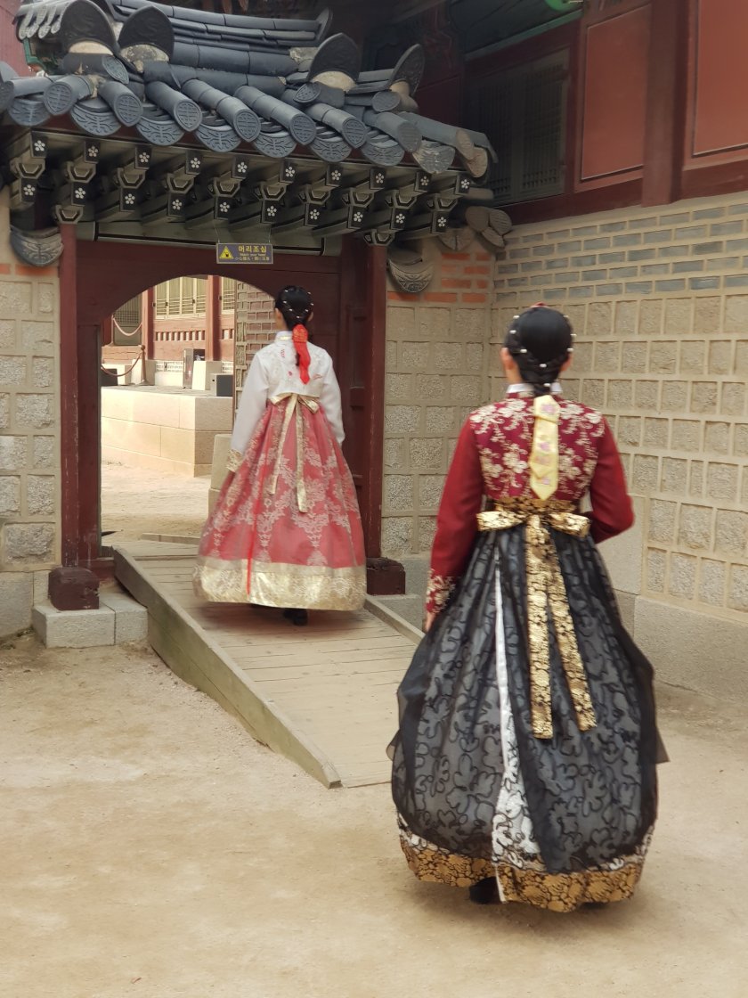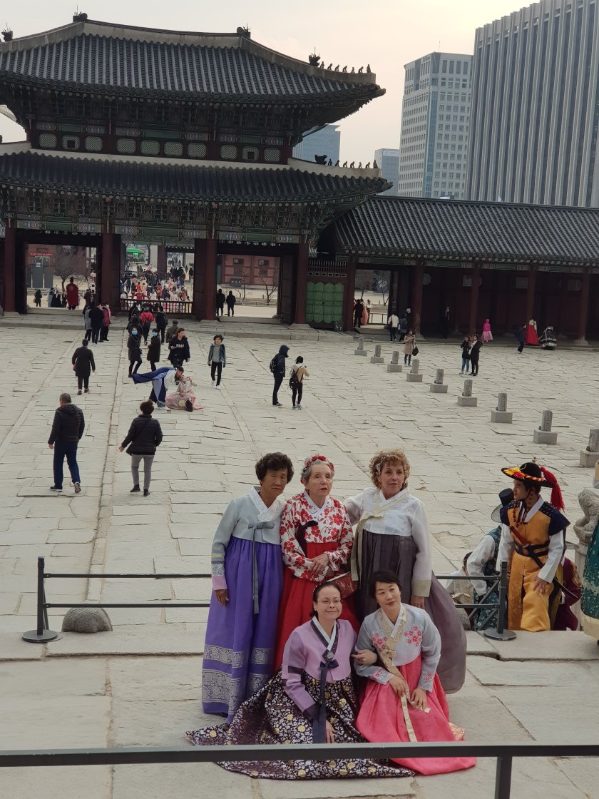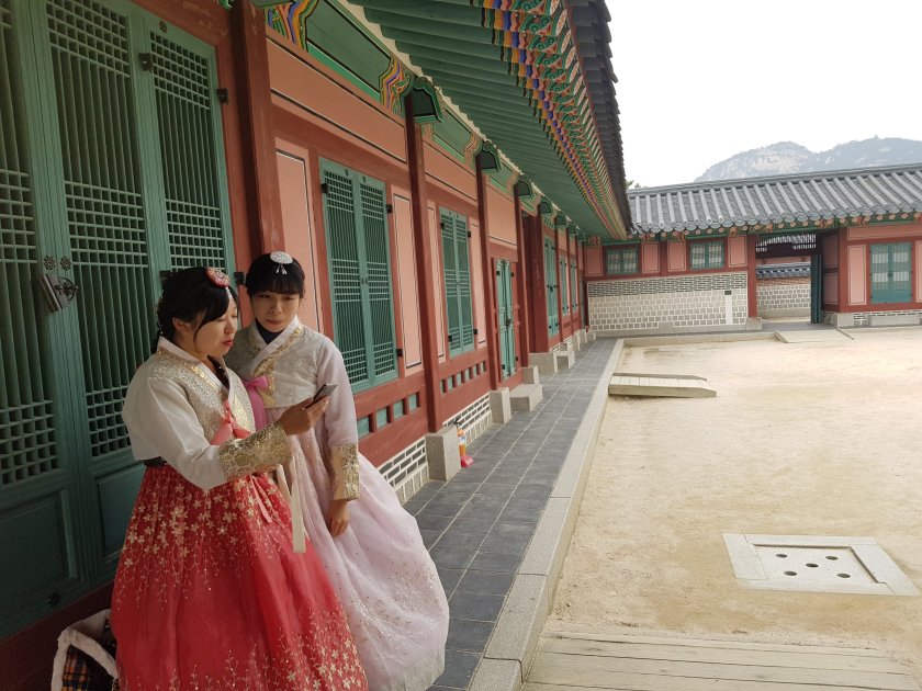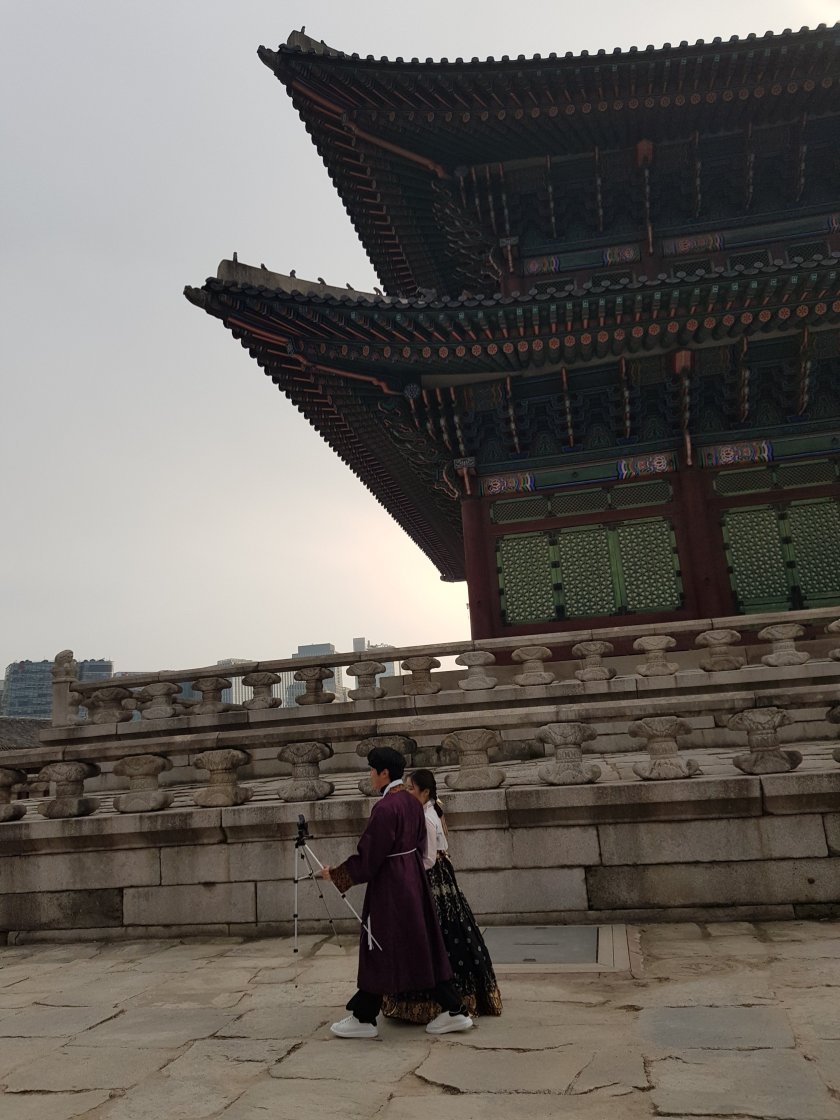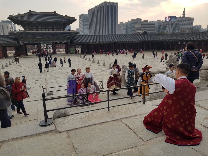 Etrafta bol miktarda eski kiyfetlerle dolasip fotograf ceken insan var. Bunlarin hepsi Koreli de degil ustelik.
